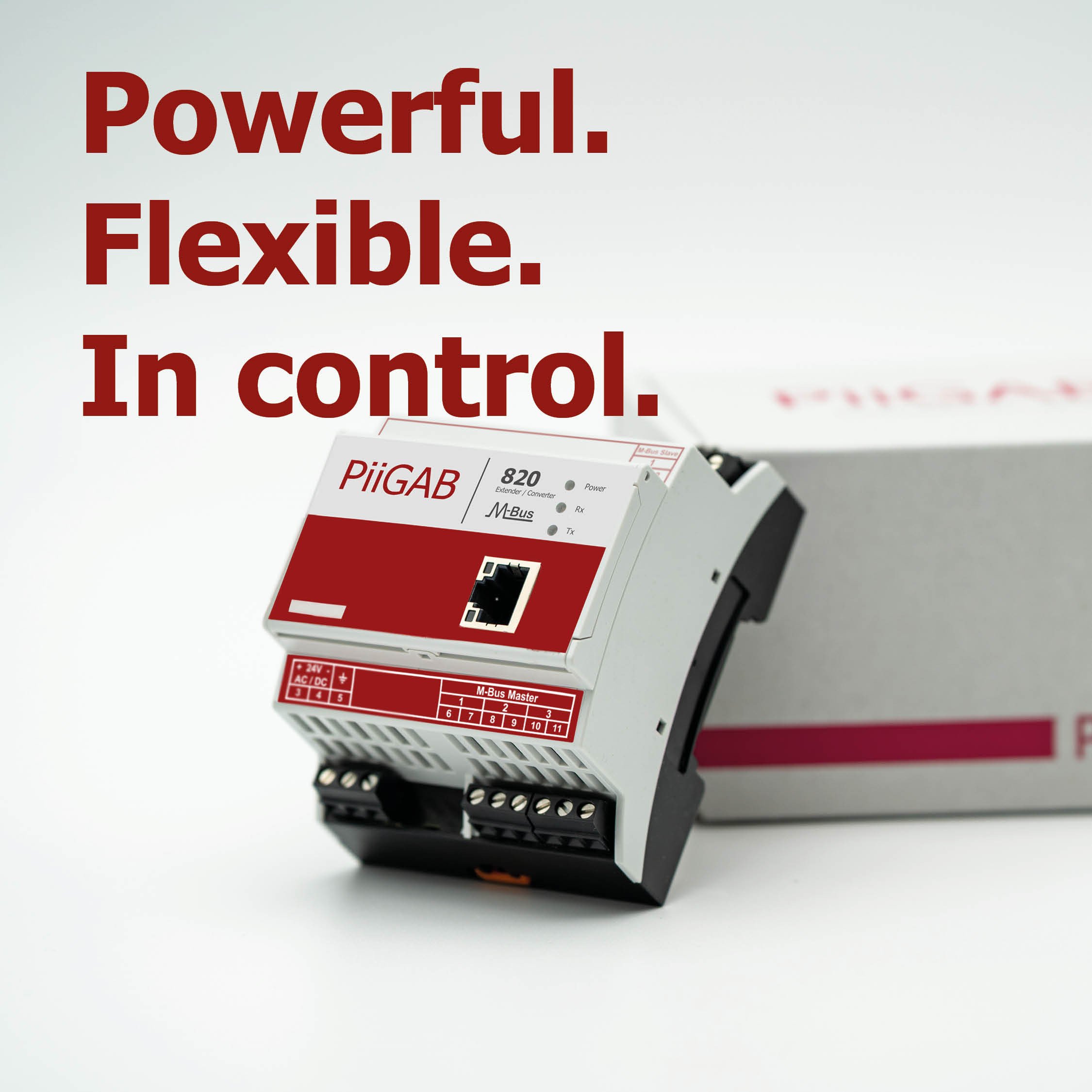 PiiGAB 820 är kompatibel med alla typer av M-Bus-masters på marknaden. Tack vare sitt oberoende av specifik master möjliggörs även utökad drivstyrka i M-Bus- system som kopplas till PLC eller DUC.